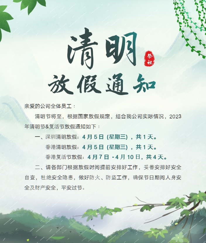深圳:2023年4月5日 放假 香港:2023年4月5日,2023年4月7日-4月10日 放假