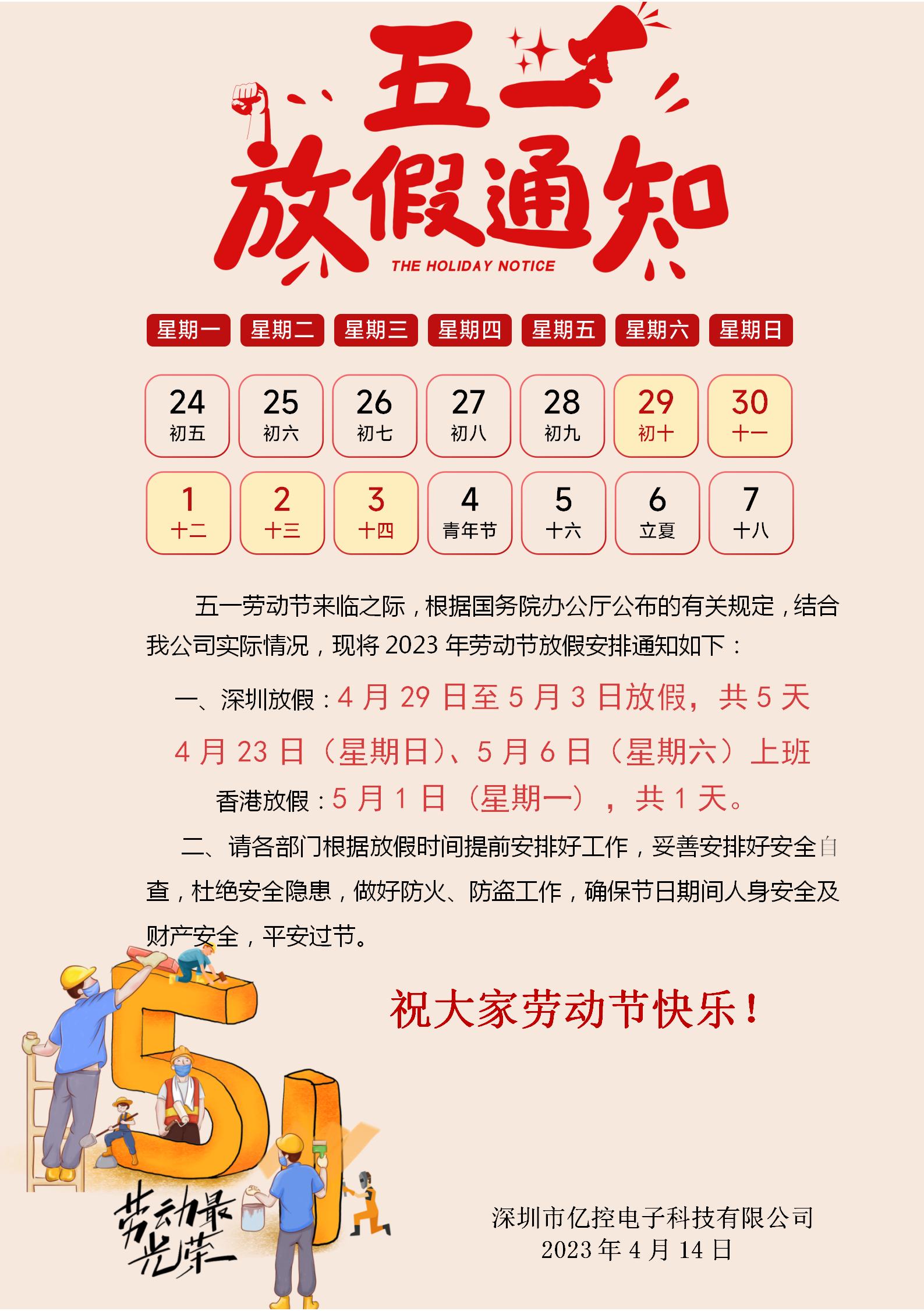 深圳:4月29日至5月3日放假,共5天;4月23日(星期日)、5月6日(星期六)上班
